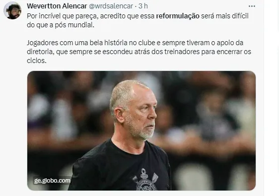 É fato que o Timão precisa de uma reformulação, e por isso muitos torcedores vem debatendo sobre jogadores considerados medalhões que devem deixar a equipe de Mano Menezes na próxima temporada. Entre eles estão: o goleiro Cássio, os laterais Fágner e Fábio Santos (esse último já anunciou sua aposentadoria no fim do ano), o zagueiro Gil e os meio-campistas Paulinho, Giuliano e Renato Augusto.