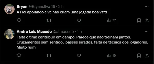 Torcida do Corinthians critica António Oliveira por não usar Garro e Coronado juntos