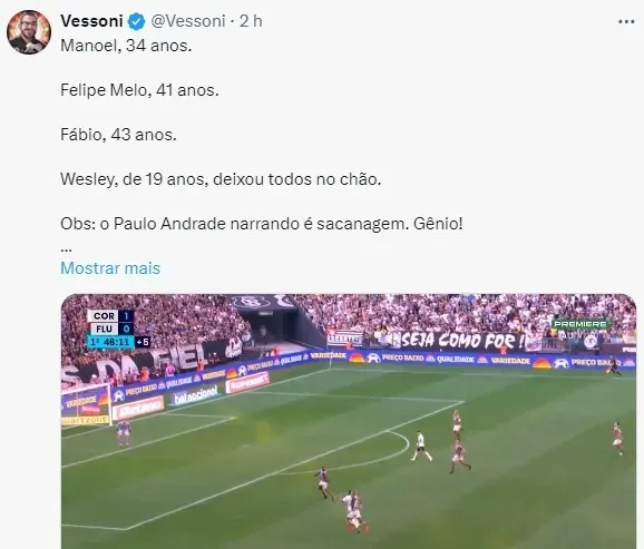 “Uma semana de clube grande, jogar num clube desta dimensão tem cobrança, mas é necessário as pessoas entenderem em que momento vivemos. Hoje jogamos com uma equipe que joga junta há três anos, no jogo contra o Atlético-MG, do último jogo tinham nove e nós três. Jogamos com o Bragantino, uma equipe estruturada e estável em elenco e treinador. Se as pessoas forem intelectualmente honestas nas análises, vão ver” disse o treinador antes de reclamar da falta de paciência