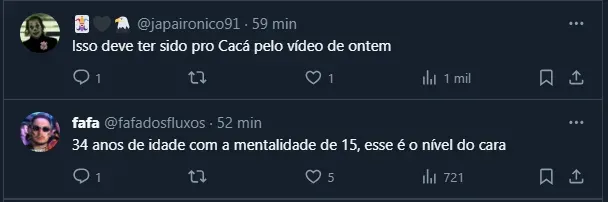 “Esse invejoso eu nem sei quem é, Pra esse cuzão aí falar de mim, Quer ter minha vida, mas não paga o preço, Vai se foder se entrar no meu camin”, digitou. Pouco depois, o assunto bombou nas redes sociais.