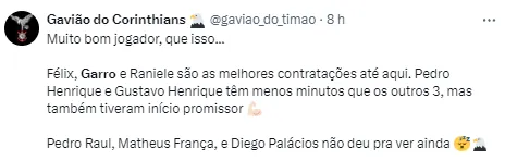 Mesmo com a derrota no jogo e com a complicação para se classificar na primeira fase do Paulistão, o treinador português António Oliveira fez questão de destacar a atuação do Rodrigo Garro, que foi um destaque por ele estar em todas as partes do campo durante a partida.