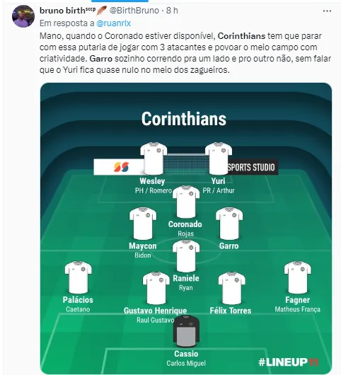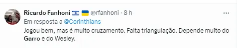 O treinador português também falou sobre o jogo. Ele não teve medo de destacar que o Timão foi melhor que o adversário no duelo, mas não teve um dia de sorte, pois várias chances de gol foram perdidas.