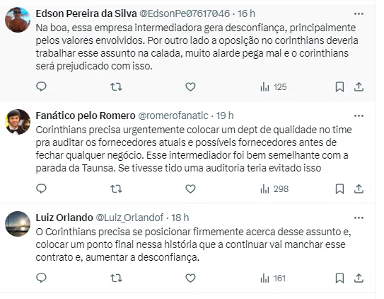 “O António Oliveira está preocupado com a falta de conversas sobre reforços. Trocar uma ideia. Não estou nem falando da falta de reforços, tá? Foi feita a promessa, ele não recebeu nenhum parecer do que o Augusto (Melo) está trazendo lá da Europa, ninguém sabe no Clube”, disse em seu canal no YouTube.