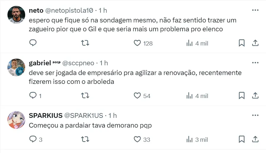 Nas redes sociais, os torcedores corinthianos desaprovam o nome de Thiago Heleno para reforçar o Clube Paulista. Resta saber se isso vai ou não interferir na decisão do presidente Augusto Melo.