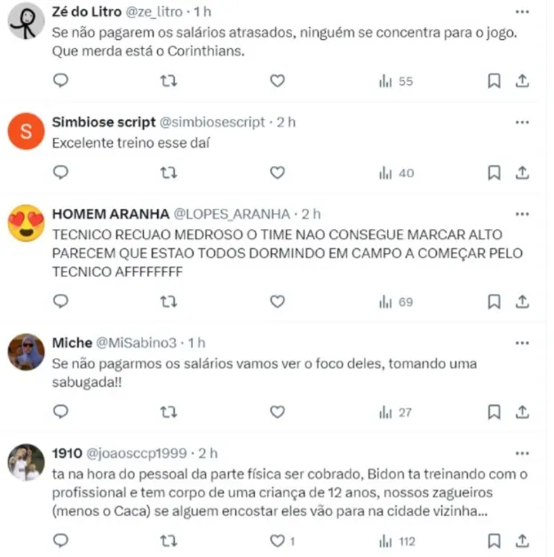 Um jogador, inclusive, confidenciou ao jornalista que está insatisfeito com os atrasos salariais e com a crise política no clube e quer pedir a rescisão de contrato para sair do Timão.