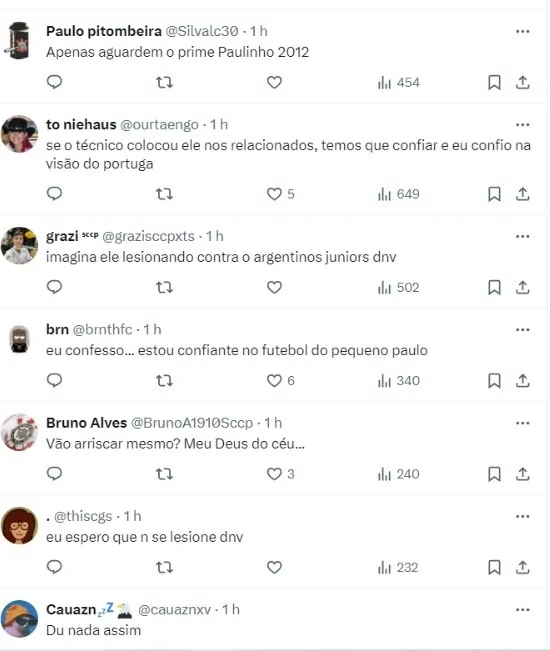 A última vez que Paulinho entrou em campo foi no dia 24 de maio de 2023. Na ocasião, o volante corinthiano rompeu o ligamento do joelho durante a partida contra o Argentinos Juniors, em Buenos Aires, pela Conmebol Libertadores.