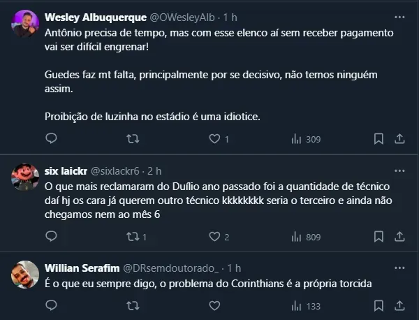 Agora, repleto de problemas no elenco e sem a possibilidade de se reforçar até o próximo mês de julho, o Corinthians terá que lidar com as carências do plantel na base da insistência. O próximo jogo será terça-feira (23), às 21h30, contra o Argentinos Juniors, em Buenos Aires.