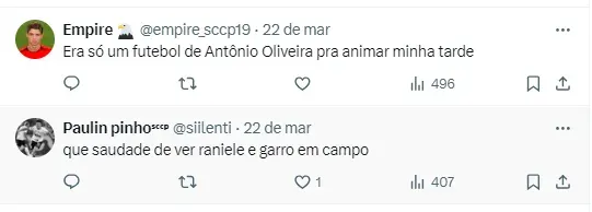 Sendo assim, o comandante vem colocando os 11 titulares, nas atividades, como: Cássio; Fágner, Cacá, Gustavo Henrique e Hugo; Raniele, Breno Bidon e Rodrigo Garro; Wesley, Yuri Alberto e Pedro Raul. O Alvinegro Paulista volta a campo dia 2 de abril, na estreia do time na Sula, contra o Racing, do Uruguai, fora de casa.