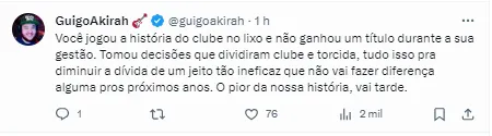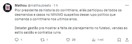 Se o intuito da gestão era de alguma forma agradar à torcida do Corinthians, a decisão rendeu um debate nas redes sociais. Duílio recebeu críticas não apenas sobre a reta final de sua passagem pelo Clube, mas principalmente pela falta de títulos nos últimos anos.