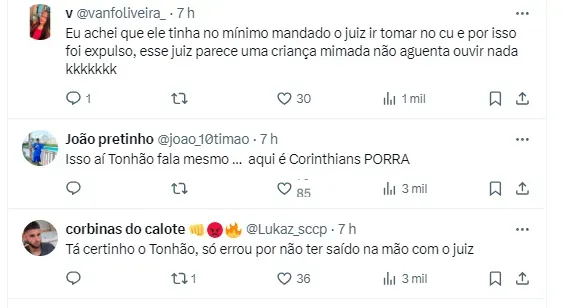 O assoprador do apito, como de praxe, acabou escrevendo a súmula da partida e nela revelou a razão para o cartão vermelho do técnico corinthiano. Tudo foi pelo que foi dito pelo comandante a ele.