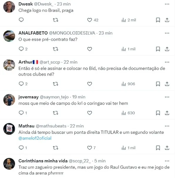 “Igor Coronado já tem um pré-contrato assinado com o Corinthians. Mas o que vai valer mesmo, na hora de inscrever na CBF/FPF, é o contrato principal. Está tudo acertado. E, como disse mais cedo, o jogador chega ao Brasil nesta semana”, informou.