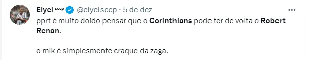 Enquanto isso, o Corinthians segue negociando para ter Robert Renan e continua trabalhando nos bastidores para qualificar o plantel. Sendo assim, a Fiel segue curiosa sobre como será o time em 2024.
