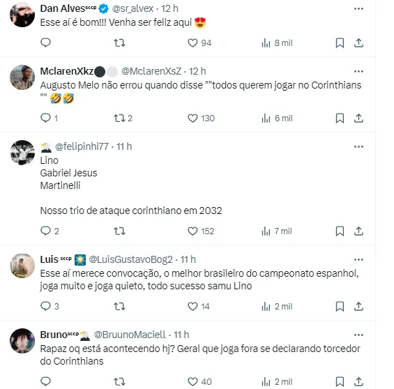 “Eu sou Corinthiano…eu gosto muito do Corinthians e é o clube do meu coração. Um dia eu sonho em jogar no Corinthians”, disse o atacante que tem contrato com o Clube Espanhol até junho de 2027.
