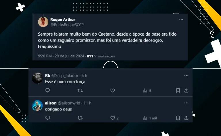 Segundo informações do Meu Timão, sem espaço no time titular, Caetano não deve seguir no Corinthians em 2025. No momento, a maior probabilidade seria de uma saída de graça.