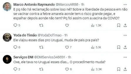 De acordo com a jornalista Monique Vilela, no entanto, Augusto Melo, presidente do Timão, não conseguiu embarcar para solo paraguaio acompanhar o sorteio pois não tinha o comprovante da vacina de febre amarela.