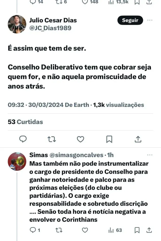 Diante desse fato, nesse sábado (30), o presidente do Conselho do Clube, Romeu Tuma Júnior, cobrou o atual presidente do Timão. Em entrevista ao UOL, o dirigente se mostrou completamente insatisfeito com a posição.