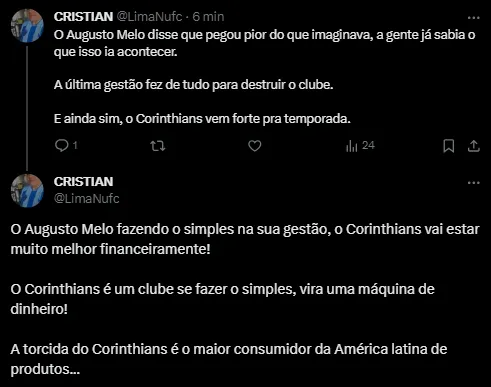 Acha que Augusto Melo fará o Corinthians funcionar em 2024?