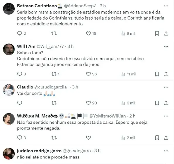 Augusto Melo: Nos arredores do estádio, possuem terrenos em nome do Corinthians. Várias torres e empreendimentos imobiliários podem ser construídos ali. Essa seria a forma que o clube apresentou ao banco para quitar a dívida da Neo Química Arena;