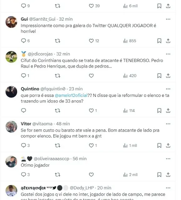 Outro ponto é que o Corinthians também segue no mercado da bola em busca de mais alguns reforços para o ano. Essa, inclusive, é uma proposta de campanha de Augusto Melo.