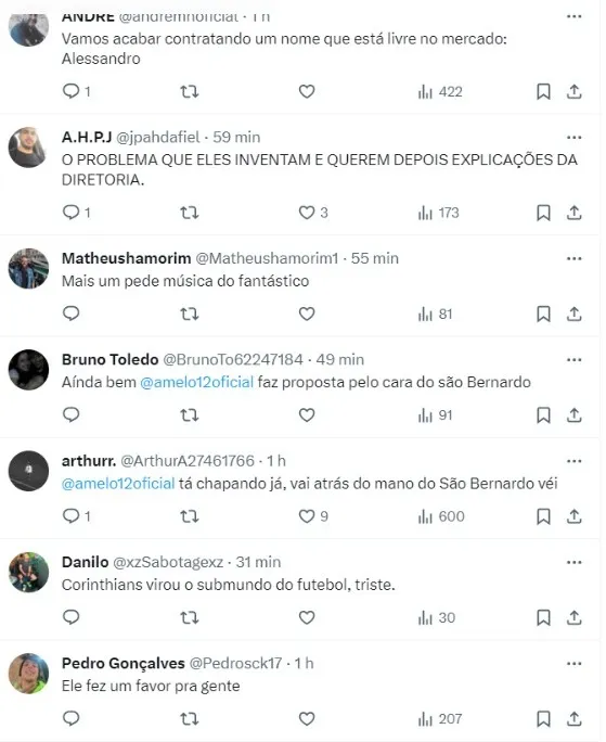 “Neste momento, buscamos um perfil de executivo profissional inovador, que seja entusiasta do trabalho de monitoramento de atletas. Ou seja, nosso Cifut. Isso porque nosso modelo de contratação de jogadores mudou. Qualquer nome indicado terá de passar pela aprovação do Cifut do Corinthians“, escreveu Augusto Melo no X, antigo Twitter.