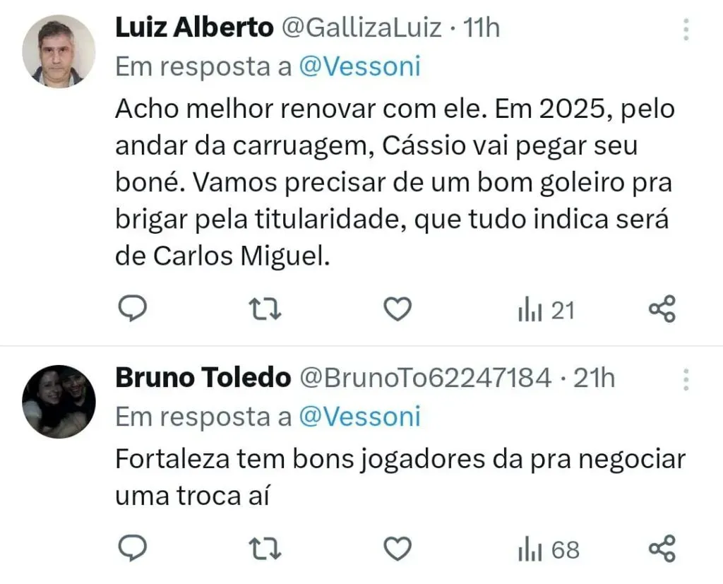 Entre os que não devem permanecer para a temporada 2024, está o goleiro Ivan. O arqueiro tem despertado o interesse de outros clubes e por isso está sendo utilizado pelo Corinthians para negociar a chegada de outros reforços.