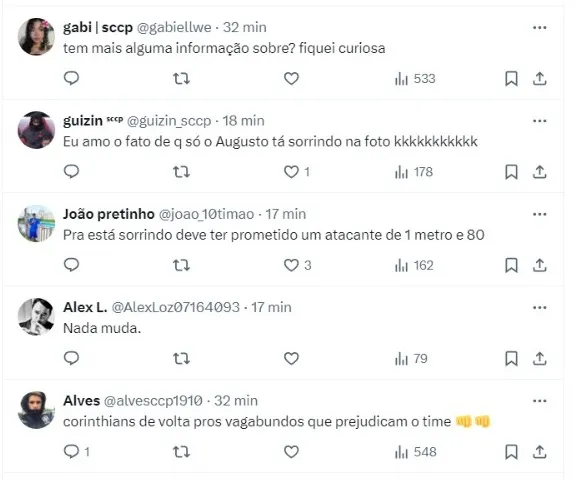 Vale lembrar que assim como na gestão anterior com o antecessor Duilio Monteiro Alves, a diretoria do clube alvinegro tem encontros frequentes com as organizadas, principalmente com a Gaviões.
