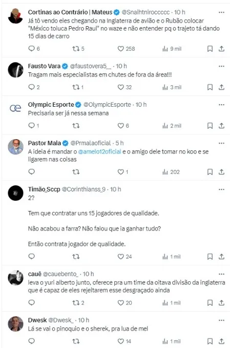 “Precisa encorpar, não cabe a mim quem vai chegar, a posição, tudo isso é o professor, o Mano está tentando trabalhar, orientar, dar atenção a todo mundo, mas sabemos como é jogar no Corinthians”, finalizou.