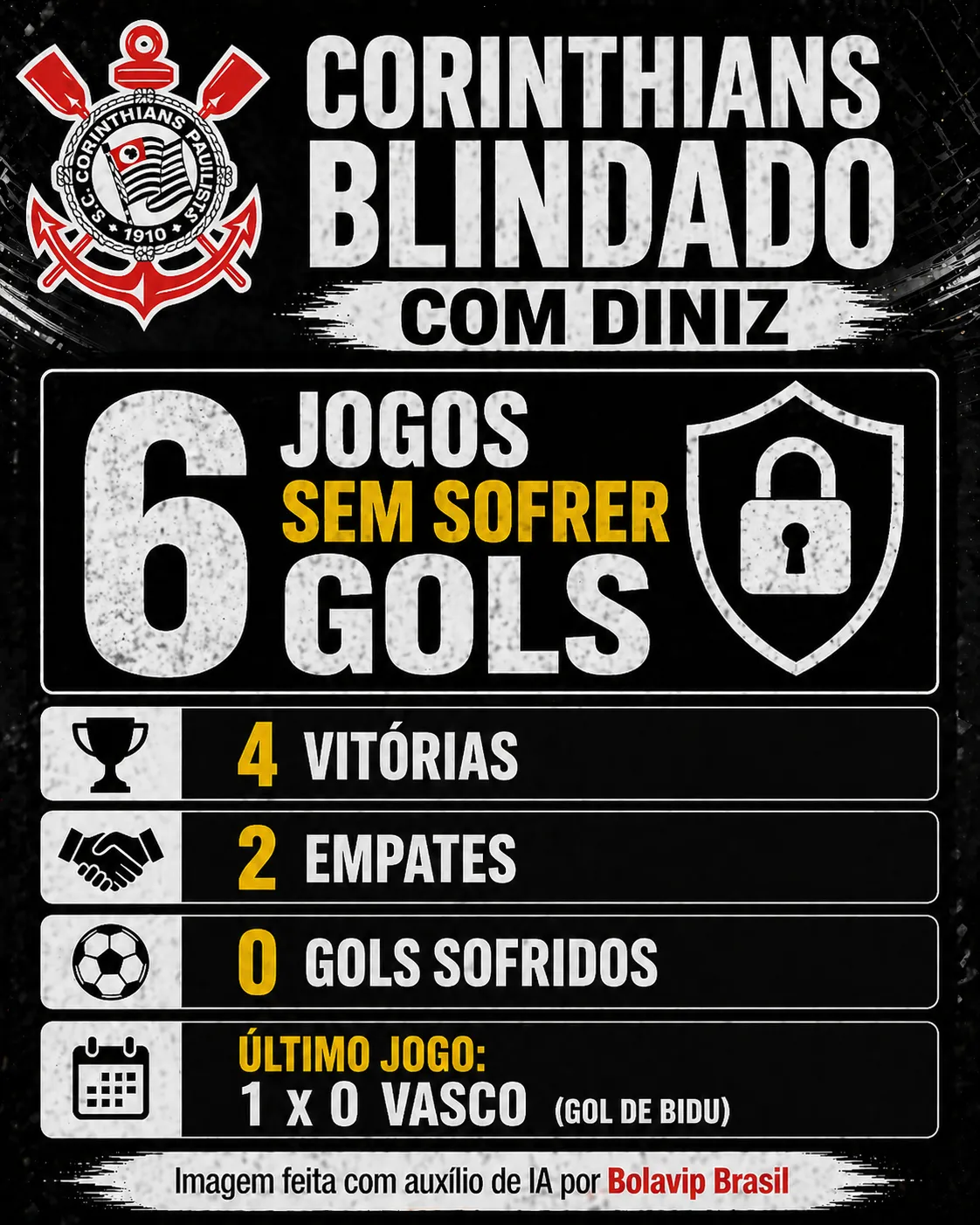 Desde que Fernando Diniz chegou ao Corinthians, o desempenho defensivo do coletivo tornou-se impecável. Em seis jogos até aqui, o Timão venceu quatro e empatou dois, sem sofrer nenhum golzinho.