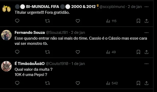 Cássio terminou a temporada em baixa, sendo criticado pelo desempenho apresentado em campo. O experiente goleiro de 36 anos possui contrato até o final de 2024.
