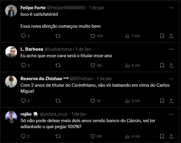 Mas parece que os planos do Corinthians são diferentes. A equipe almeja continuar com Carlos Miguel, deve oferecer um novo contrato, com valorização financeira que pode agradar o jogador de 25 anos.