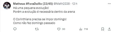 A vitória chega em um momento fundamental para que a equipe conquiste a solidez necessária, como explicou o treinador: “Uma vitória importante para nós confiarmos na capacidade que temos de voltar a vencer. Não está tudo maravilhoso, não é algo de empolgação, porque não é hora de empolgação, mas é algo que agrega muito em termos de confiança para a equipe voltar a entregar um futebol constante, competitivo e sólido, como sempre foi a característica do Corinthians”. A entrevista reverberou no portal Meu Timão
