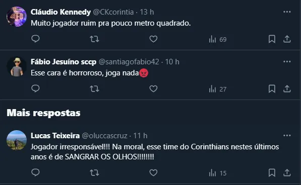 Vale mencionar que uma das críticas do torcedor após a partida foi o fato do Coringão ter utilizado uma linha com três defensores. Na zona mista, inclusive, o zagueiro Cacá se mostrou bastante irritado com um questionamento sobre o tema: