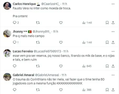 A queda de rendimento vista com Fausto Vera pode abrir uma vaga no setor, já que a diretoria não descarta uma saída, especialmente em decorrência de críticas pesadíssimas vistas após o clássico diante do Palmeiras.