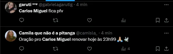 “A defesa que o Carlos Miguel fez foi inacreditável. Ainda tinha gente querendo que o Donelli assumisse logo, como forma de “revanche”” e “Fica Carlos Miguel pelo amor de Deus”, foram algumas opiniões da Fiel.