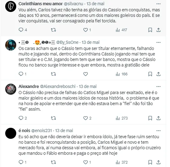 Apesar da saída de Cássio, o atual titular da meta corinthiana fez questão de elogiar seu agora ex-companheiro. Ele revelou que o ídolo do Time do Povo foi um dos jogadores que mais o auxiliou desde que chegou, em agosto de 2021.