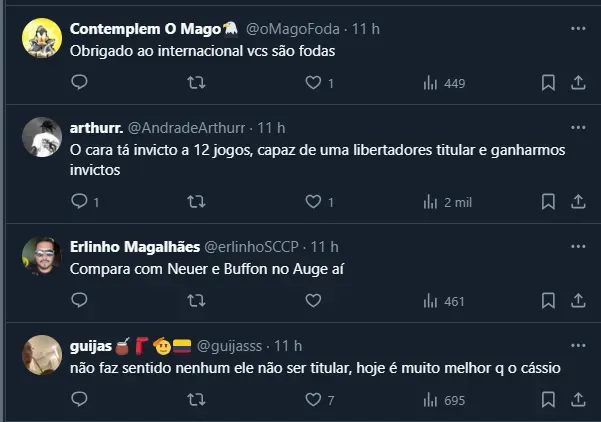 Vale destacar que, apesar de estar buscando o recorde de número de jogos pelo Timão, o contrato de Cássio vai somente até dezembro. Até por isso, os corintianos resolveram se manifestar nas redes sociais.