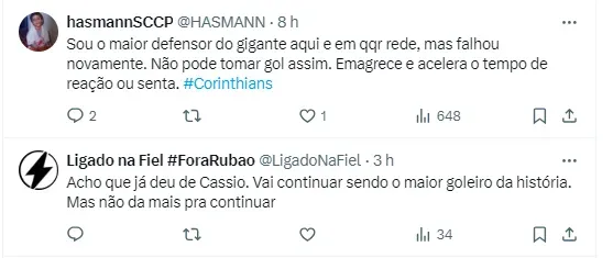 Vale ressaltar que o presidente da equipe, Augusto Melo, também fez cobranças. O dirigente revelou que vem conversando no vestiário e disse acreditar na evolução do time nas próximas partidas.