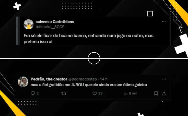 “Era só ele ficar de boa no banco, entrando num jogo ou outro, mas preferiu isso aí”. “Caindo dentro do gol e sem agilidade nenhuma! Sem falar a tremedeira com a bola nos pés, não fez e nunca fará falta ao Corinthians”, publicaram outros membros da Fiel.