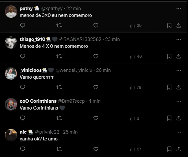 “Liderança não é só falar, mas é o cara que demonstra, que não se exime e se coloca para ajudar em situações difíceis do time. Acho que o Raniele, o Gustavo Henrique e o Félix Torres são caras que podem mostrar isso. Os poucos mais velhos, que ficaram, vão ter que se posicionar também, será necessário“, disse o ídolo do Corinthians.