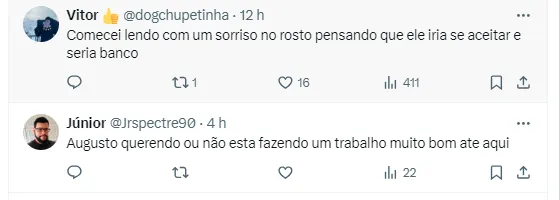 “O Cássio pegou a palavra e discursou na frente dessas pessoas na reunião. Ele disse que já viveu tudo no Clube, já chegou no topo e também já viveu seus piores momentos ali. Mas que ele não tinha visto um presidente ser tão sincero assim e que isso é muito bom”, revelou o jornalista em seu canal no YouTube.