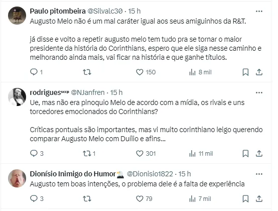 Camisa 12 elogia mandatário corinthiano