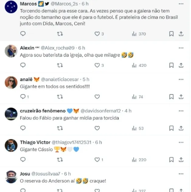 Pessoas comprometidas a trazer o Cruzeiro novamente em busca de títulos. Minha meta é ajudar a levar o Cruzeiro por esse caminho (de títulos e vitórias)“, salientou o arqueiro.