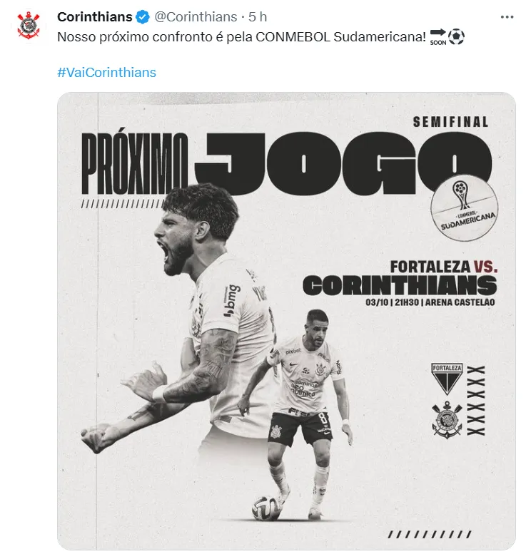 Agora, as atenções estão voltadas para a decisão da Copa Sul-Americana, contra o Fortaleza, na terça-feira (3). Aliás, há grande possibilidade de Mano promover novidades no time que viajará para a capital do Ceará. Segundo o portal ‘Meu Timão’, 11 jogadores das categorias de base treinaram com o elenco principal neste domingo (1).