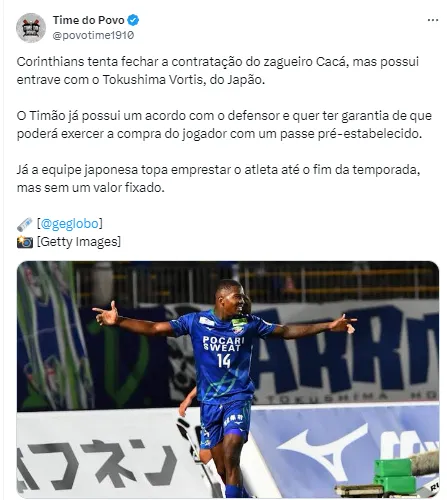 Vale lembrar que a ideia da equipe é ter uma segurança de que se o zagueiro Cacá se destacar e for de interesse de ambas as partes dar continuidade pagar um valor que já esteja acertado, para não acontecer de quando uma negociação para compra for realizada, os japoneses pedirem algo fora da realidade.