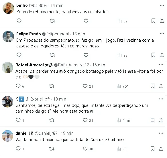 Com esse resultado, o Botafogo soma agora 13 pontos, empatado com Athletico-PR e Bahia, porém, à frente no critério de gols marcados. Já o Corinthians, com apenas cinco pontos, caiu para a 17ª posição na tabela.