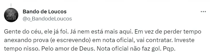 “O Sport Club Corinthians Paulista informa que, ao contrário do que disse o atleta Lucas Veríssimo em vídeo que circulou na tarde desta terça-feira (30), o clube enviou, em 4 de janeiro de 2024, ao estafe do jogador, o pré-contrato de trabalho para ser assinado“, dizia um trecho da nota.
