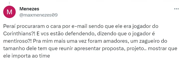 No documento, o Corinthians se refere a “Paulo”, que é Paulo Pitombeira, empresário de Lucas Veríssimo e muitos outros que estão ou já passaram pelo Parque São Jorge nos últimos anos.
