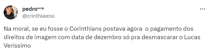 Em entrevista cheia de polêmicas ao ‘Canal do Benja’, em certo momento Lucas Veríssimo chegou a afirmar que o Corinthians “criou uma narrativa” para “vender” ao torcedor. O atleta se referia ao contrato que o clube teria de ter apresentado, mas o zagueiro afirma que não recebeu.