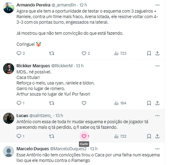 Reações da Fiel sobre a escalação