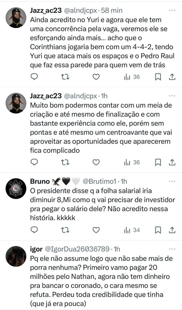 Por conta disso, Augusto Melo está no mercado em busca de soluções para o elenco. Depois de definir Antônio Oliveira como treinador, o presidente quer trazer mais alguns reforços para fechar o elenco do maior campeão paulista para o ano de 2024.